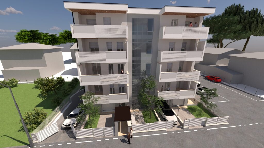 L’edificio sarà composto da 12 appartamenti di diverse metrature, progettati per rispondere a differenti esigenze abitative, con soluzioni funzionali e spazi ben distribuiti. Le unità abitative saranno caratterizzate da elevati standard costruttivi, comfort moderno ed efficienza energetica. A servizio della residenza sono previsti garage sia al piano interrato che al piano terra, garantendo praticità di accesso e un’adeguata dotazione di posti auto.
