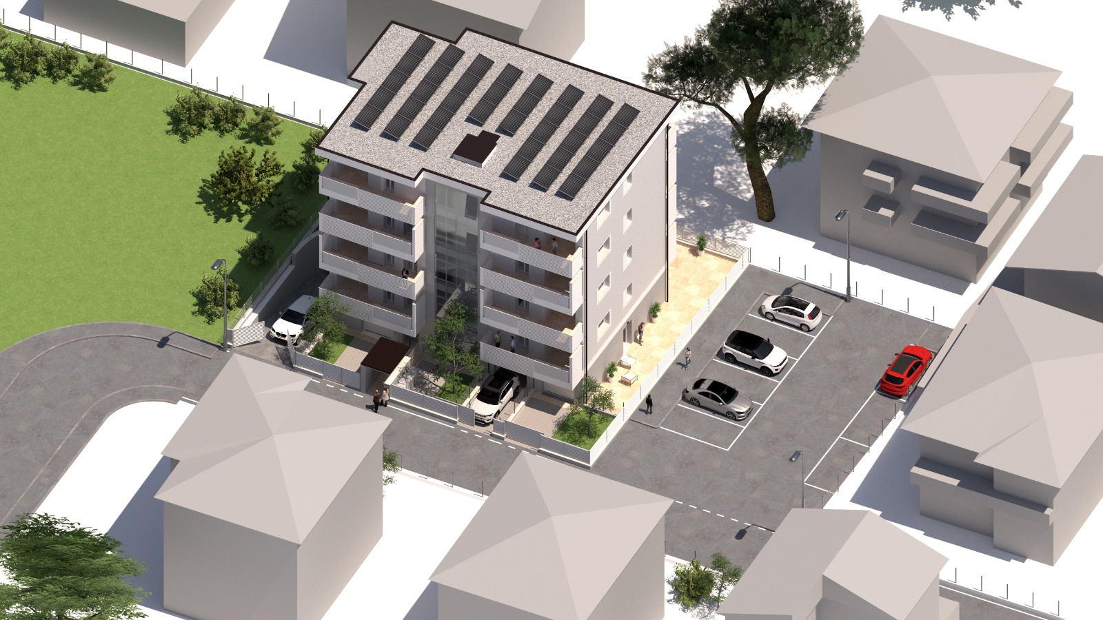 Nel complesso, il progetto rappresenta una soluzione abitativa moderna e sostenibile, capace di coniugare la tranquillità del verde pubblico con l’accessibilità, i servizi e le infrastrutture di una delle zone più dinamiche della città di Rimini.